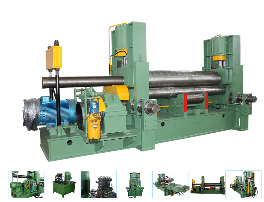 W11SNC萬能式三輥卷板機是一種雙夾板彎板機。 上輥為液壓驅(qū)動。 上輥可水平和垂直調(diào)節(jié),兩個下輥是固定的。 所有合金鋼輥均經(jīng)過感應(yīng)淬火和熱處理。 經(jīng)過感應(yīng)淬火處理后,所有的輥都將被研磨和拋光。