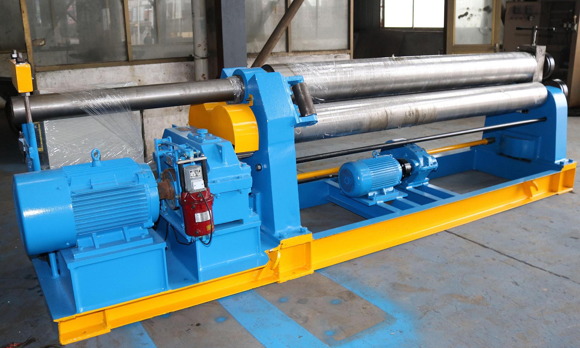 W11對(duì)稱卷板機(jī)是全機(jī)械對(duì)稱式三輥卷板機(jī)。 三個(gè)滾筒全部固定,像金字塔一樣放置。